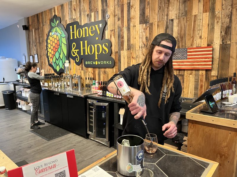Owner of Honey and Hops, Isaac Rushing, continues to serve guests as the fundraiser progresses at his establishment.