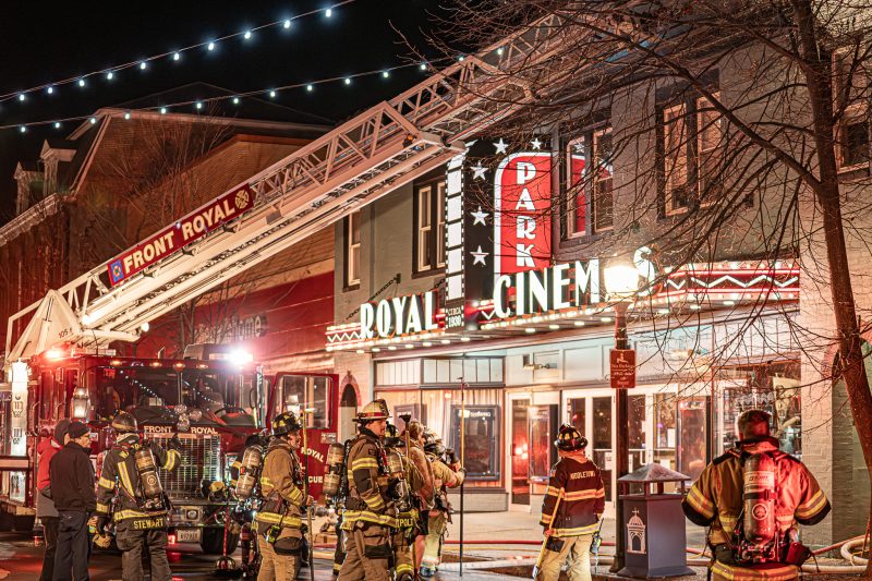 As flames and smoke filled the second-floor projection room of Royal Cinemas on the evening of Sunday, January 18, theatergoers and first responders alike experienced a tense and emotional night in the heart of downtown Front Royal.