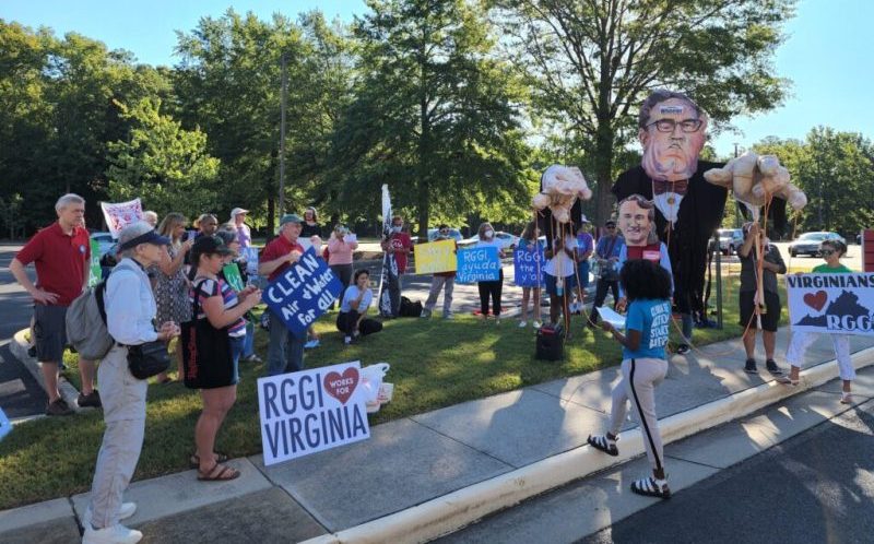 In Richmond, activists displayed caricatures of Youngkin and former Environmental Protection Agency chief Andrew Wheeler while chanting, “RGGI is the law.”