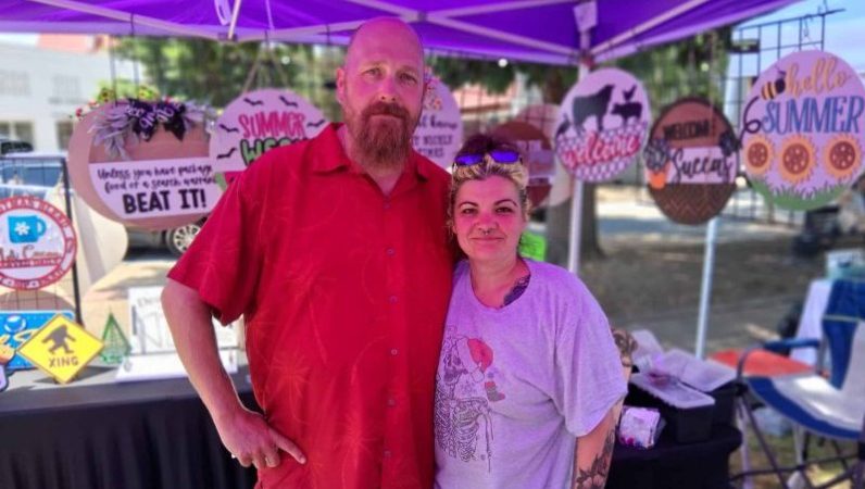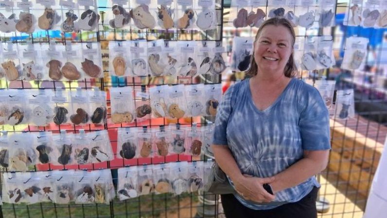Shauna and Raymond Neely of Two Crafty B’s showcased their 3D-printed fidget toys, event-themed clickers, and detailed laser-engraved creations, all made with a personal touch. Below, Pilar Rinky, a retired zookeeper, displayed her hand-painted animal art tiles at Christmas in July, offering one-of-a-kind pieces under the name Clear Sky Animal Art.