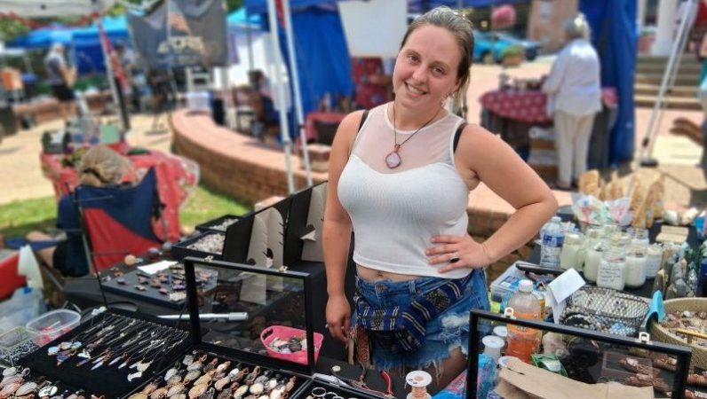 Alana Linaburg of Good Vibe Dealer Custom Creations displayed her intricate wire-wrapped jewelry, featuring natural stones and rare minerals from around the world, each piece shaped by hand.