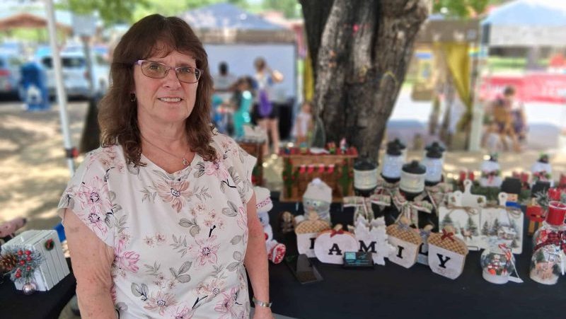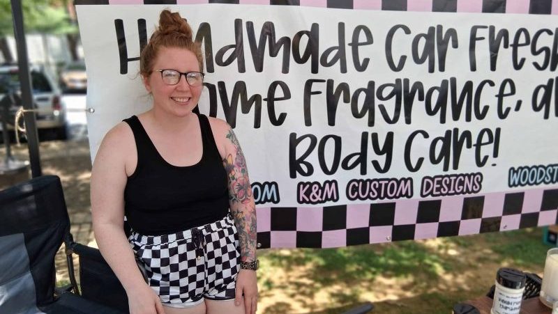 Kirsten Connor, owner of K&M Custom Designs, shares her handmade car fresheners and candles at the Christmas in July event. “I’ve been doing this since 2020,” she said. “All baked, painted, and made by hand.”