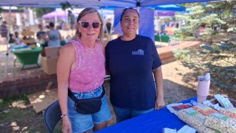 Over at the Friends of Samuels Library (FOSL) booth, Chantal Gamble, Sydney Patton, and Pyda Gonzalez kept the holiday energy high despite the heat. “We’re definitely bringing the spirit into the hot day,” Gamble said with a laugh. “But we could’ve used a snow machine!” With smiles, fans, and a few frosty wishes, the FoSL crew helped spread the word about their continued advocacy for local libraries and the joy of community reading.