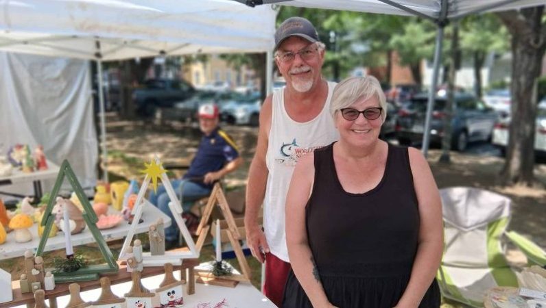 Nearby, Carolyn and Larry Dachenbach of Stuff and More Stuff brought a quirky mix of handcrafted goods, including wine jellies, recycled glass art, and one truly unforgettable highlight: the “pole dancing mouse” lamp. “It’s amazing what you can do with a little creativity,” Carolyn said with a laugh, gesturing to their beach glass decor and repurposed wood pieces. Originally from Iowa and now calling West Virginia home, the couple’s booth drew smiles from every passerby.