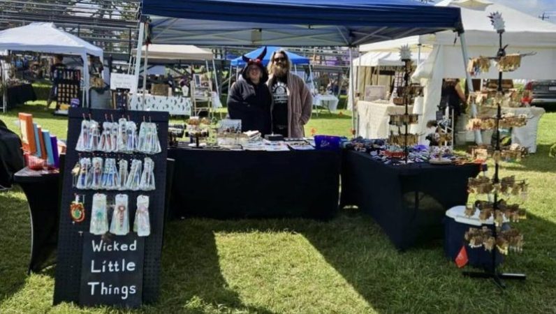Shoppers also met Josh and Sarah Hawes of Wicked Little Things, a business born from their love of gemstones and quirky gifts, including tarot decks and “blind date with a book” kits. Not far from them, Kirsten Connor, owner of K&M Custom Designs, sold her popular car fresheners and hand-poured candles. “I’ve been doing this since 2020,” she said. “All baked, painted, and made by hand.”