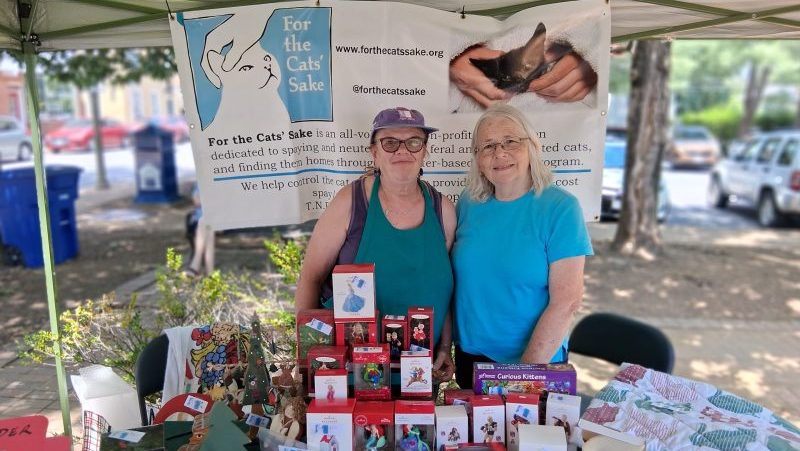 Crafters weren’t the only ones out. Roxy Leonard and Janine Gordon of Cats for Cats’ Sake spoke passionately about their trap-neuter-release (TNR) program for local feral cat colonies. Across the way, Stacey Philpot of Life Repair Center, along with Courtney and Sarah, shared information about their upcoming women’s shelter and goat-assisted therapy programs. “Healing happens in motion,” said Philpot, gesturing toward their therapy goats brought along for the event.