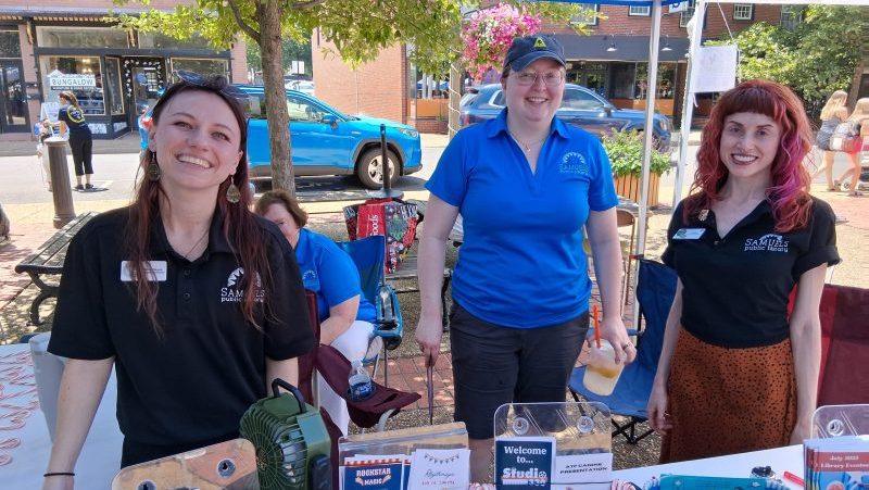 At the Samuels Library booth, Erin Rooney, Amy Hayes, and Jessica Sayers handed out goodies and shared excitement for upcoming programs—especially September’s fan-favorite, SamiCon. Below, Joyce Wimmer of Dolly Parton’s Imagination Library shared how the beloved book-gifting program has been inspiring young readers in Warren County since 2003.