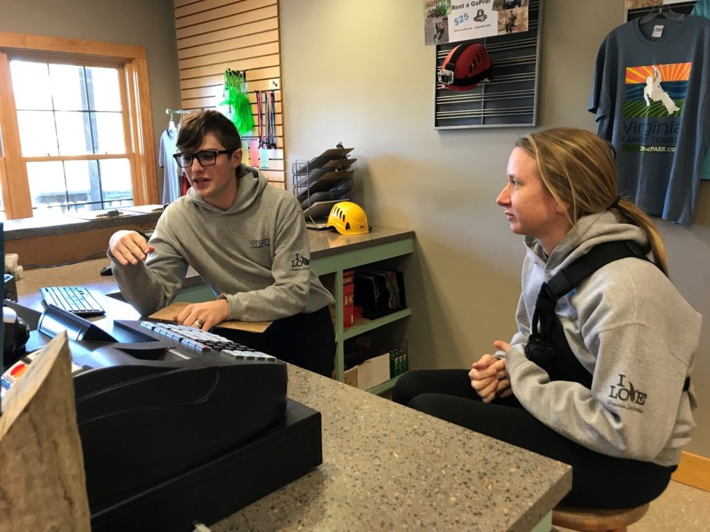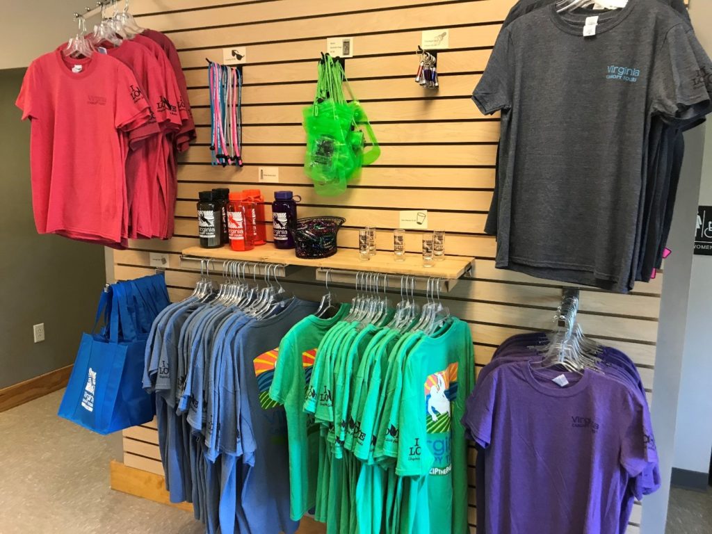 Merchandise, snacks & drinks are sold by Virginia Canopy Tours at its headquarters building, which also includes restrooms, tour and tubing gear, and a computer station for photo options. Photo by Kim Riley.